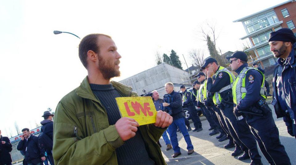 It was in the collection of pictures that were given to me from the day of the port incident. I thought it was the one of the best pictures I’ve seen from Occupy Vancouver- many people have told me the same. I’ve met the guy in the picture, and am having trouble putting the face to the name. But, if you’d like it taken down are, and you can prove to me that you are this person, I’ll gladly take it down.