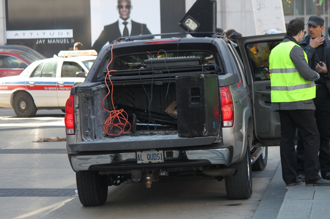 Now, have a look at the license plate of the truck that is being used for the Robocall Rallies “Al Quds1”. The Al-quds Brigades are a millitant wing of the Palestinian Islamic Jihad that are labelled as a terrorist organization in Canada! Personally, I find it rather disturbing to find an organization like this calling to have a new election without even waiting for an investigation- don’t you?