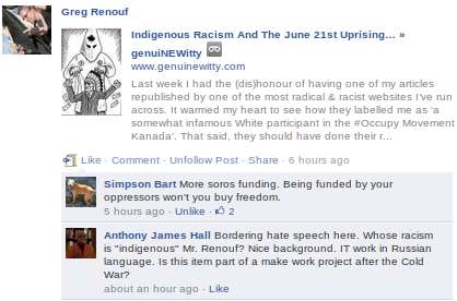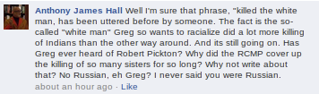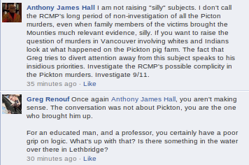 Today, this genius of the Alberta academic set decided to attack me for the article I wrote on Indigenous Racism and the June 21st uprising. Now, I have no problem with someone questioning what I write, but I do expect a certain amount of logic & intelligence to be applied to any criticism- particularly from a university professor, and a man who claims to live in pursuit of the truth. Unfortunately, it appears logic is a problem for Professor Hall, and truth is not all that important to him.