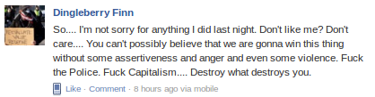 Sadly I agree, this guy is a ticking time bomb, I can support diversity of tactics as long as we continue to keep the peace. When enough people join a movement, it has lobbying power and credibility, violence or property damage is not only unnecessary to promote, it’s the most damning thing that can work against us.