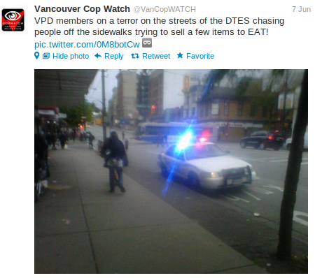 I heard that Vancouver Cop Watch (VCW) would be on CKNW when they tweeted it out a couple of days ago. So, I emailed CKNW’s Susanne Hill and made sure she was up-to-date on the stories I wrote about VCW. I’d figured she had- as, the word on the street I’d caused quite a stir, but wanted to make sure.