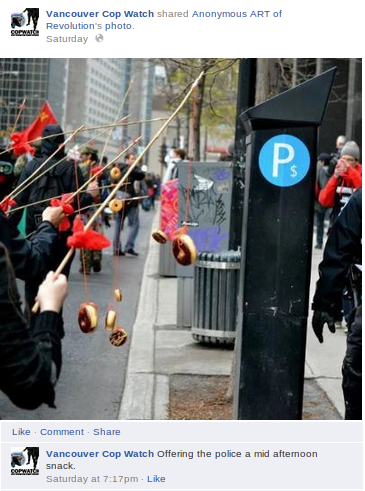 As you can see from the above image (posted in their Facebook page 2 days ago) – they certainly have a strange way going about doing it! Or, to the police like to be teased with doughnuts? How is this being ‘here for both sides’?