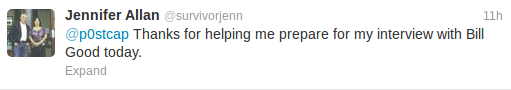 So, there you have it folks! One of the reasons that Jenn Allan’s lies were so skilful was because she was guided by Ivan Drury! So, basically, Bill Good did an interview with Ivan- only, with Jenn as his proxy. Tricky! And, I’d suggest to CKNW that they do a bit more research before letting something like this happen again…