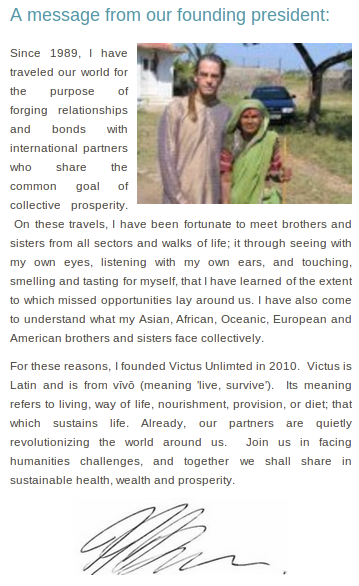 In this case, we’re talking about a scheme Bowman calls Victis Unlimited. A ‘company’ that is selling investment opportunities in Asia & Africa. Bowman named the company using his superior knowledge of Latin- it looks like it is standard modus operandi to make people think he is smart.  (is his ‘Harvard’ degree in Latin perhaps?). Here’s how he tells the story: