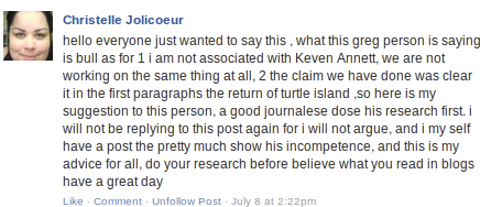 Jolicoeur was an adamant supporter of Kevin Annett back in March. But, only three days ago, she came out and denied that she was supporting or working with Kevin Annett: