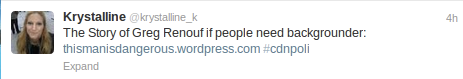 Krystalline Kraus, of Rabble.ca decided to make my case a bit stronger today- in retaliation for this article, she decided to tweet out Alex Hundert’s website and get it more publicity. Thank you Krystalline, this shows us the quality of journalism at Rabble.ca (meaning, it’s non-existent).