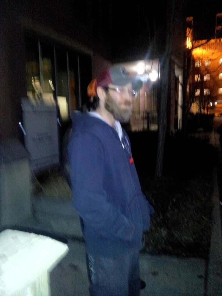 When I tried to walk inside the building, Hundert bumped himself against me and stopped me from going inside. Some of the Occupy marshals offered to move him out of my way that night, but I refused- it would have been hypocritical of me to support someone using violence in this situation- after all, Hundert began stalking me because I was standing-up for Occupy’s principles of non-violence.