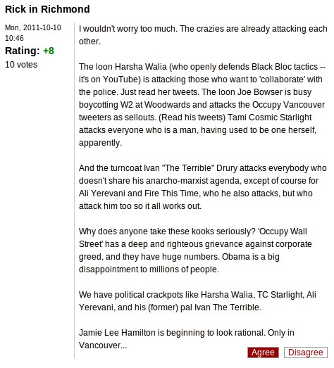 So, while searching for some things today, I came across this comment from an article on the Georgia Strait from October 7th. The article is about the launch of Occupy Vancouver- this guy’s comment is a classic.