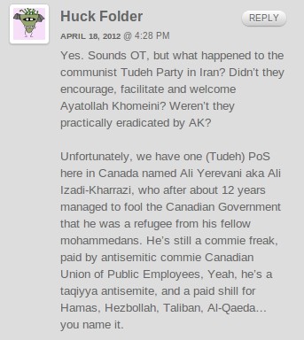 Canada cancelled diplomatic relations with Iran recently- we called them a terrorist threat. I’m betting people like Yerevani are going to be under a lot of scrutiny in the near future. There are a lot of people in the activist community who have allied with Iranian revolutionaries- I wonder if they are getting nervous right now?