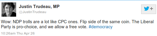 Typical. But, of course, lefty trolls don’t exist- do they? Oh, you still don’t believe me? Well, let’s ask Justin Trudeau: