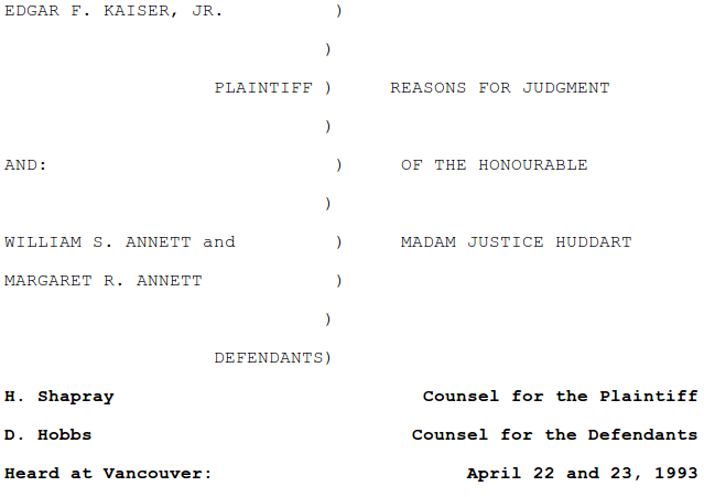 The first issue that Carten covers is to contradict my claim that William Annett was involved with WCW. But, this directly contradicts the fact that William is listed on three separate lawsuits with WCW and outside organiations (KAISER RESOURCES LTD v. WCW, Rain Coast Water Corp. v. British Columbia & EDGAR F. KAISER v. William S & Margaret Annett). Is that not sufficient evidence John? Or, do you think that there are two William S Annett’s in the family? I’m open to that- but, it would need some explanation behind it.