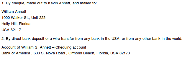Update: Bill Annett has written to Lydia White Calf telling her that there is another William S Annett who is his son and works for a pharmaceutical company in San Francisco. This may, or may not be true- from my experience with the Annett’s, they are not reliable sources…