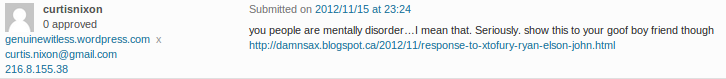 Curtis Nixon is not very smart as he has demonstrated so many times. He didn’t luck out in the brain or looks department. In a way I feel pity for this idiot.
