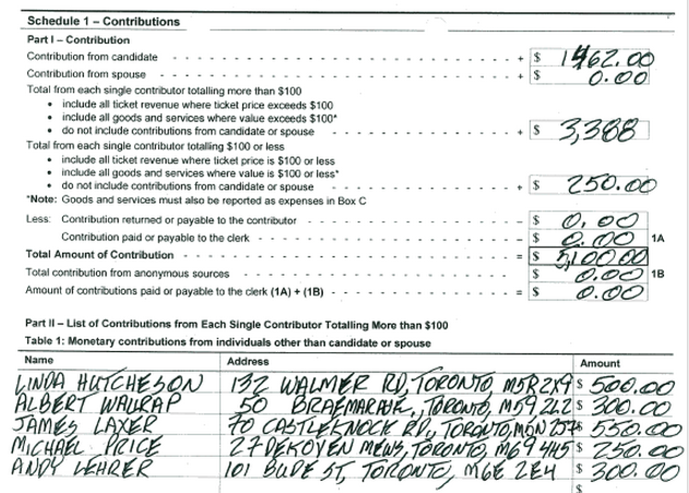 I’ve saved the best part for last- thought I’d end the article with a bang. I’m now in possession of Michael Laxer’s financial statement from when he ran as a candidate for the Socialist Party of Ontario back in 2010. Not only is Andy Lehrer the listed head of the SPO, he’s was also a donor to Michael Laxer’s campaign: