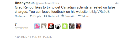 Someone claiming to be with Anonymous then tweeted out that I’ve been framing activists for false crimes. Afterwards, 100’s of people came to my site. Luckily, many have come to me and expressed their regret that this happened to me.