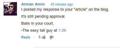 Some of you have written some very ugly responses to me trying to justify what happened. Perhaps you were a bit hot-headed and hurt at the moment- I can understand that, and won’t hold it against you. I will, however, ask that you write me an apology for what you’ve said. In return, I’ll erase the comments you made here or on my YouTube page, all will be forgotten, and your apology will be kept private.