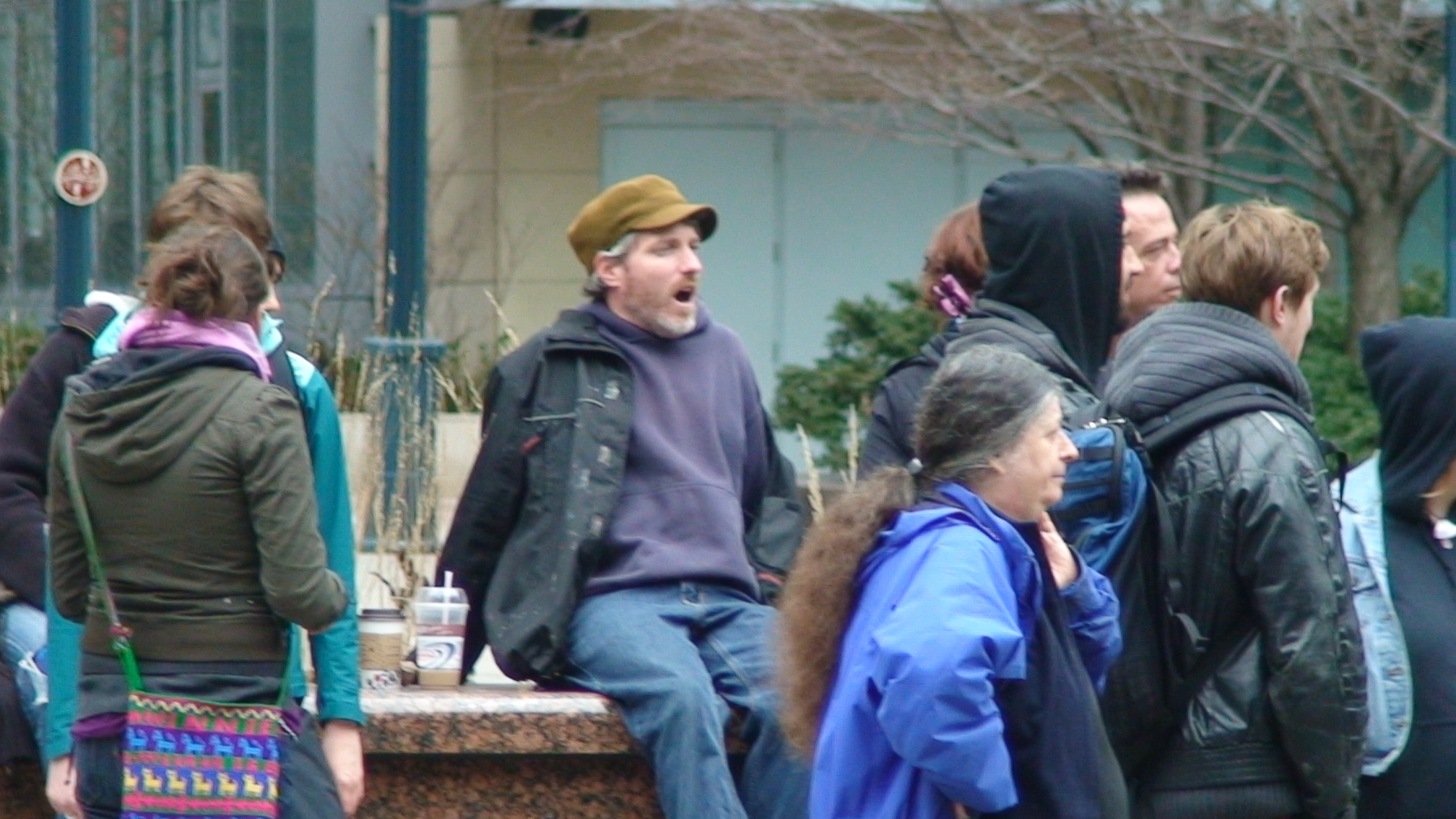 It was pretty much the same crowd, as always, but there were many less people this year. At last year’s event Saunders had the luxury of support of the remaining members of Occupy, today it’s all but dead. There were many familiar Occupy faces though including Dave Vasey, Trey Winney, and Katie Berger. The big star of the day was Alex Hundert, a G20 ringleader who has recently been released from solitary confinement after serving his part leading the orchestrating crimes back in 2010.