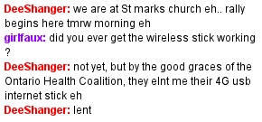 Today’s event was a “shadow summit” run by the Ontario Health Coalition protesting the Council of the Federation- a semi-annual gathering of Canada’s provincial premiers. Occupy Toronto’s Dee Shanger (a.k.a. Captain Yarr, or Giovanni Sampogna) showed-up with his Livestream equipment, capturing the speeches and presentations. There were some pretty high-profile people present, including CUPE Ontario president Fred Hahn, and Maude Barlow- the chairperson of the Council of Canadians, an organization known to this site’s readers as a leading enabler of political violence.