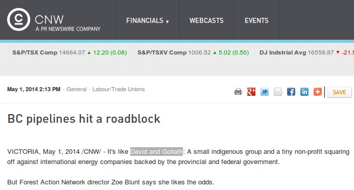 Besides Hudson, the person next most quoted person in the media has been Zoe Blunt. Using the Forest Action Network’s banner Blunt issued a press release calling Unist’ot’en a “David and Goliath” battle and declaring that “we have lawyers, and we’re ready to fight”. They also have some of the country’s most alarming promoters of violence.