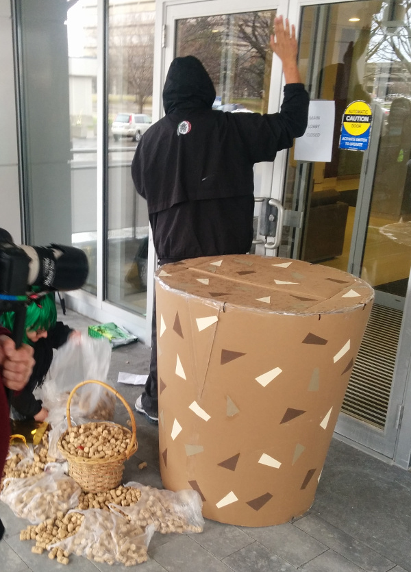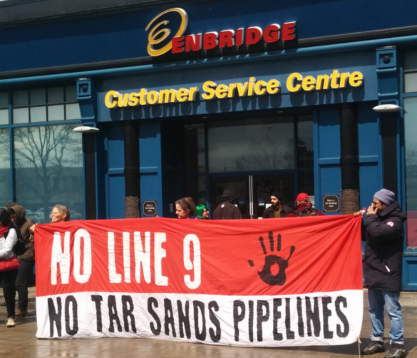 A few minutes later the protesters walked a couple of doors over to Enbridge gas distribution’s consumer payment centre. The protesters were jubilant to discover that the centre had been closed down for the day. Of course, Enbridge didn’t lose any money from this, bills still have to be paid, the only people who suffered were the 99% who were unable to pay their bills.