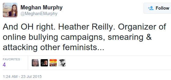 She smeared Blatchford with some cheap shots. She claimed that Blatchford “frequently tries to peddle anti-feminist sentiments” (shock, horror!). She also claimed that Blatchford’s article provoked people to attack the complainants over the Internet (a deflection tactic we’ve seen a lot of since the trial).