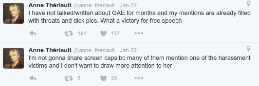 Thériault was quoted in the Huffington Post claiming that her Twitter feed was filled with “threats and dick pics” a few hours after Elliott was pronounced not guilty. But, curiously, when people asked her to back up her claim, she refused to share any examples of these tweets. Many people didn’t believe her, neither do I after her dodgy posting on Canadaland. Anne Thériault is the worst.