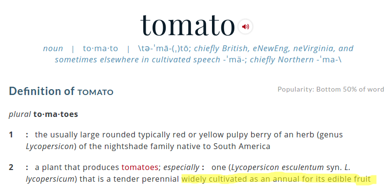 Miriam Webster definition, tomatoes are a fruit