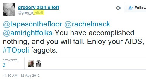 Elliott was eventually found not guilty of the charges against him, and his trial brought worldwide recognition of the failures of Ontario’s justice system. But adding insult to injury, the judge nevertheless criticised Elliott for a hateful tweet he was alleged to have made saying, “Enjoy your AIDS #TOpoli faggots.