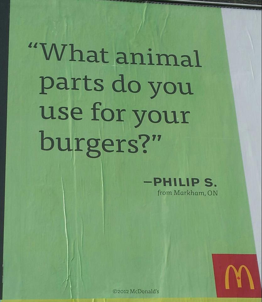 I’ve never seen a more inept nor insulting set of ads from McDonalds before. They’ve covered the city with posters with questions about the content and nutritional value of their food (if you can call it that). This one in-particular caught my attention…