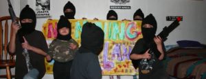 Someone with a sharp eye for anarchist criminality pointed out an interesting picture posted on the Toronto Media Co-Op today. They call it a ‘meme’. At the top, there’s a picture of the Black Bloc anarchists who smashed up Toronto during the G20 saying “Get On the Fence”. At the bottom is a picture of …